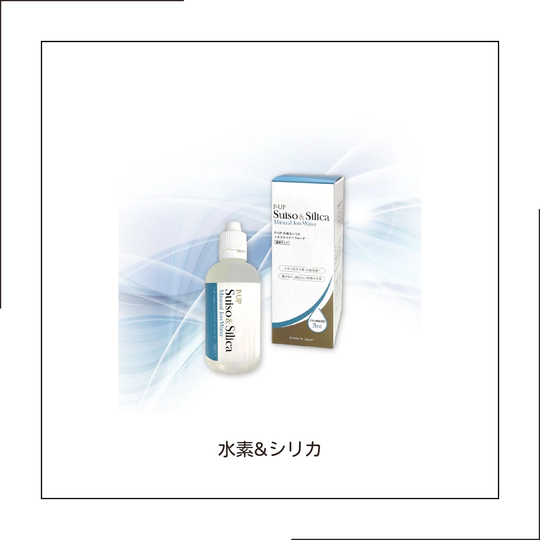 希少な天然ミネラル水、高濃度のケイ素イオン水、濃縮された水素イオン水をブレンドしたミネラル水溶液です。 健康に欠かせない30種類以上もの豊富なミネラルを含み、イオン化することで吸収を促します。さらに、超美振動P-UP®︎波と水素によって活性酸素を取り除くサポートをします。